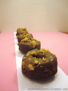 Die Schokoglasur schmelzen, auf jeden Donut einen Teelöffel verteilen und sofort die Streusel daraufstreuen.