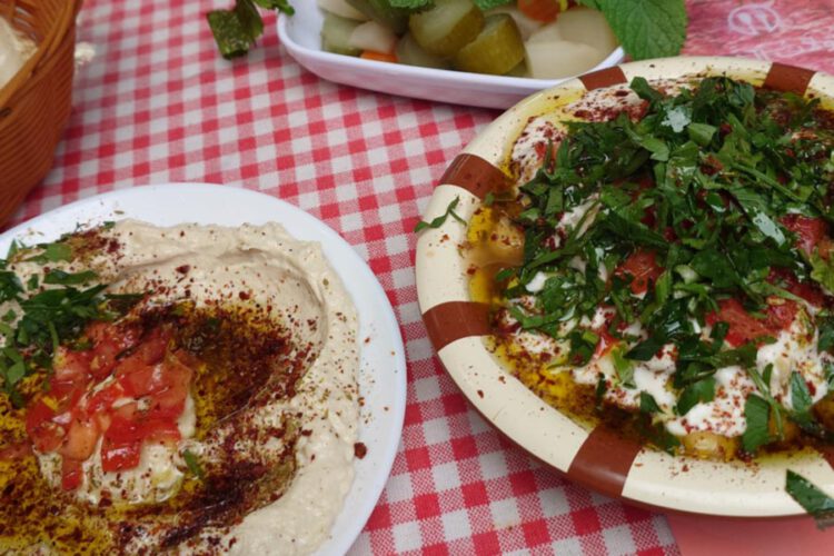 Muttabal, Kichererbsen mit Joghurt, Sauergemüse und Minze, ein Teller Falafel mit Hummus und Beilagen, Brot und Eistee (20€) am Brunnenmarkt (1160). Ich mag die Stimmung hier so viel lieber als z.B. am Kutschkermarkt (so bougie!) oder am Naschmarkt (so touristisch). Leider habe ich mir nicht gemerkt, bei welchem Stand ich gegessen habe.