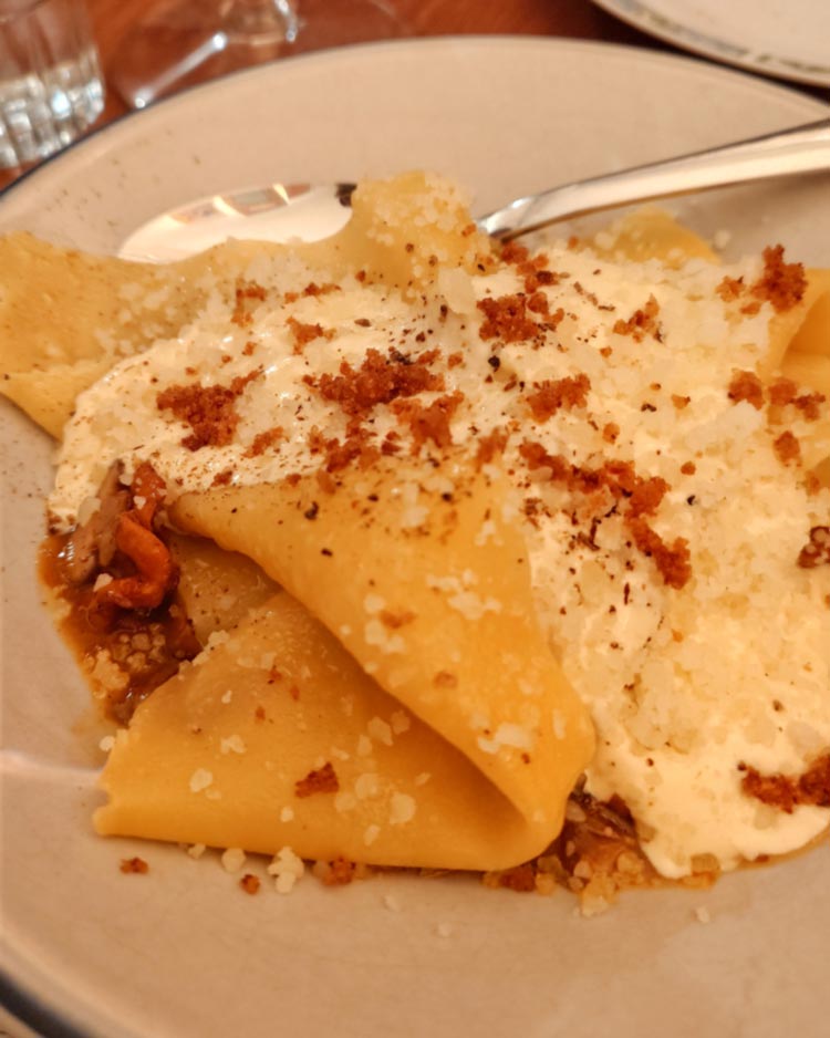 U.a. Eierschwammerl Ragout, Pasta, Pecorino (22€) und Buchweizen-Tostada mit Roter Rübe, Kräutermayo und Meeresspargel (6€) im Café Caché (1150). Ersteres dauerte ziemlich lange und hatte auch viele Champignons zwischen den Pfifferlingen versteckt, ich mochte es aber dennoch sehr: bissfeste, breite Pastastreifen, cremige Pecorinosauce, Brösel.