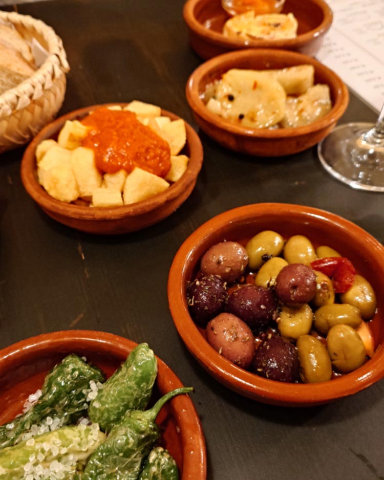 Auf ein Glas Rioja und ein paar Schüsserl Tapas ins Puerta del Sol (1080): Aceitunas en Adobo (3,50€) mit viel Knoblauch und Kräutern. Berenjenas en Escabeche, also ziemlihc säuerlich eingelegte gehäutete Melanzani-Scheiben (5,20€). Tortilla Española (4,80€). Pimientos de Padrón (5,50€) und Patatas Bravas (4,50€) bleiben meine Favoriten.