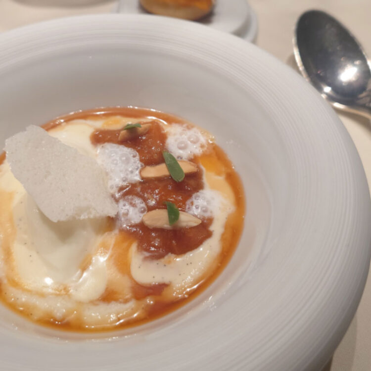 In Zuckersüß 513 hatte ich noch angekündigt, hier im Blog ausführlich über das tolle 6-Gänge-Menü (225€) zu schreiben, leider habe ich es nie geschafft. Hier also immerhin ein paar Fotos: BBQ-Kaisergranat, Holunderblüte & Bergminze; auf Holzkohle gegrilltes Spitzkraut & Räucheraal, Wachauer Marille, Crème Blanc Manger & Florentiner.