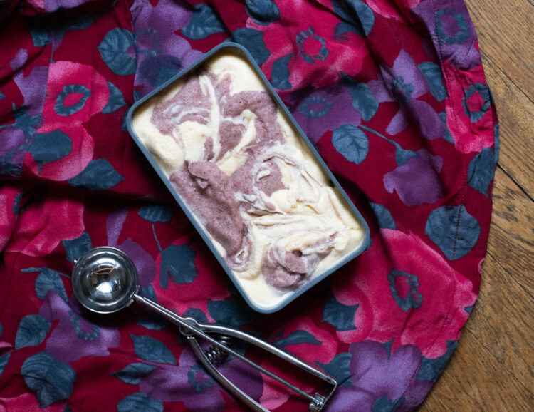 Achtung: für dieses Rezept ist eine Eismaschine mit Kompressor nötig, weil man direkt hintereinander zwei verschiedene Sorten machen muss.