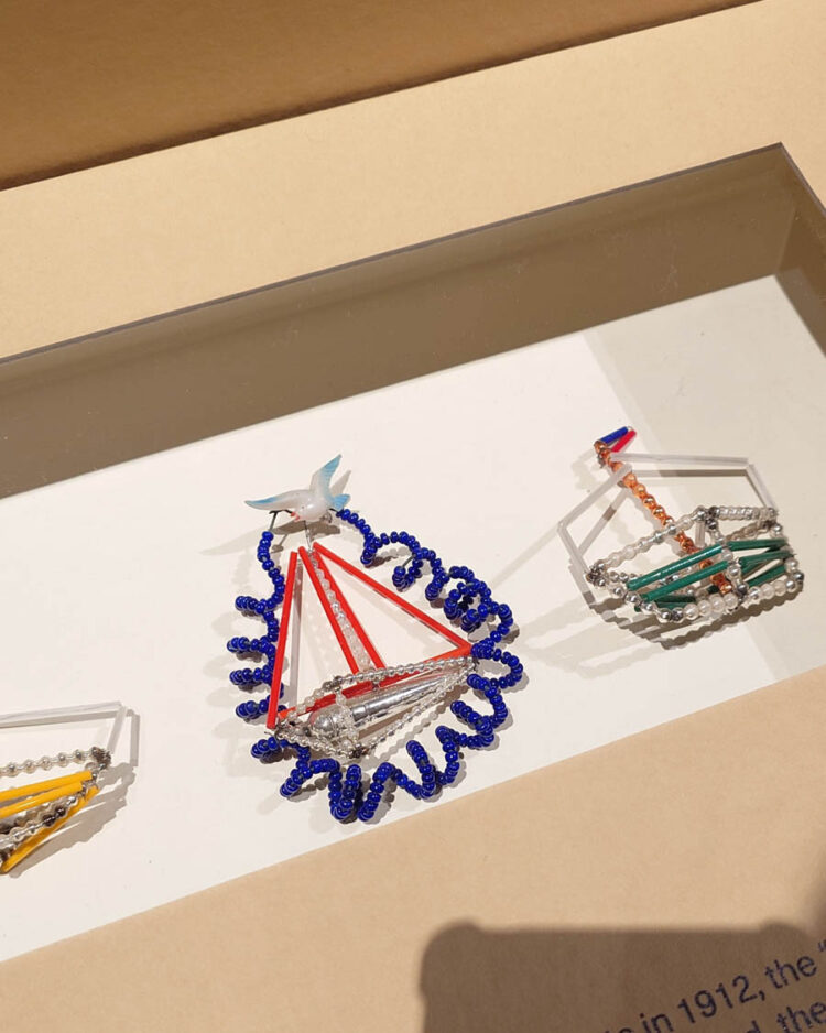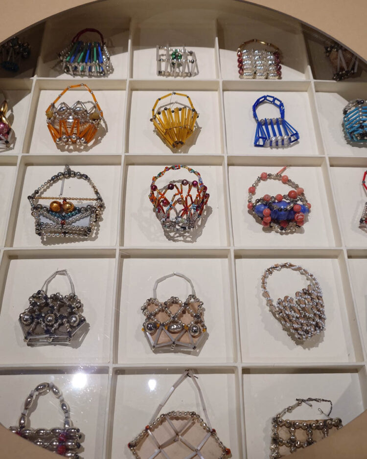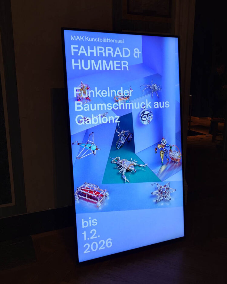 Ich bin am ersten Jännersamstag ins MAK, eigentlich um die Helmut Lang-Ausstellung anzuschauen. Aber da war sehr viel los und ich hatte kaum Zeit, weshalb ich stattdessen kurz in die Fahrrad & Hummer -Sonderausstellung schaute (noch bis 1. Februar). Dort ist Christbaumschmuck aus Gablonz (heute Jablonec nad Nisou, Tschechien) ausgestellt, der hauptsächlich aus komplexen Glasperlen, aber auch Elementen aus Textil und Holz besteht. Das Design der Ausstellung – sehr zurückhaltend mit dunklen Farben und thematisch zusammengestellten Objekten, kein Baum weit und breit – hat mir gut gefallen und lässt viel Raum für die teils kitschigen Ornamente. Die Erklärtexte lieferten eine Steilvorlage für Recherche-Rabbit-Holes:
