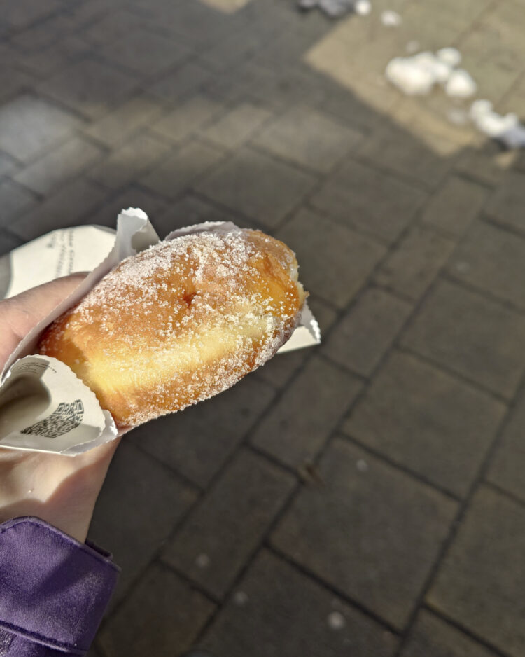 Einen Krapfen mit SEHR viel Marillenmarmelade vom Öfferl (1180, 3,90€) am Faschingsdienstag. Ein Pain au Chocolat von Motto Brot (1060, 2,80€). Einen Walnuss-Riegel vom Anker aus dem Westbahn-Automaten – einerseits finde ich cool, dass es dort nicht nur „Supermarkt“-Snacks gibt, sondern auch was vom Bäcker, andererseits war das nicht gerade die Spitze der Konditorkunst.