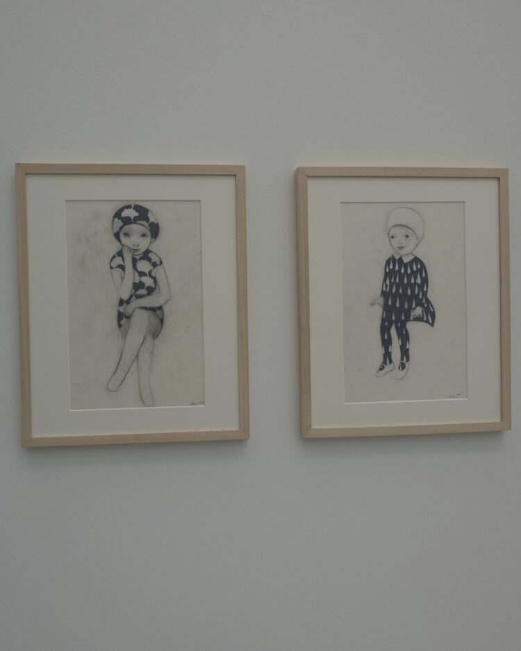 Dass Teresa Präauer nicht nur tolle Romane schreibt (über „Kochen im falschen Jahrhundert“ habe ich hier gebloggt), sondern auch malt, habe ich erst in dieser Ausstellung gecheckt. Von ihr sind u.a. zwei namenlose Zeichnungen von melancholisch wirkenden Mädchen zu sehen.