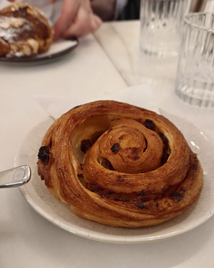 Ein Canelé (3€) und eine Escargot au Raisin (?) im Parémi (1010). Ich muss mir endlich Canelé-Formen besorgen!