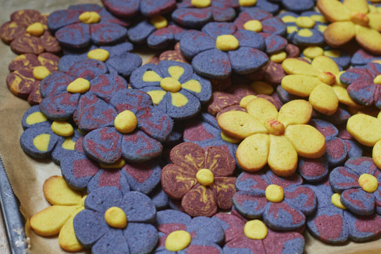 Lauren Dozier, die vor einiger Zeit mit ihren bunten Quilt-Keksen viral ging, hat vor einigen Wochen Stiefmütterchen-Kekse auf Instagram gepostet. Die fand ich so hübsch, dass ich sie unbedingt nachmachen wollte.