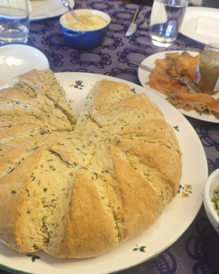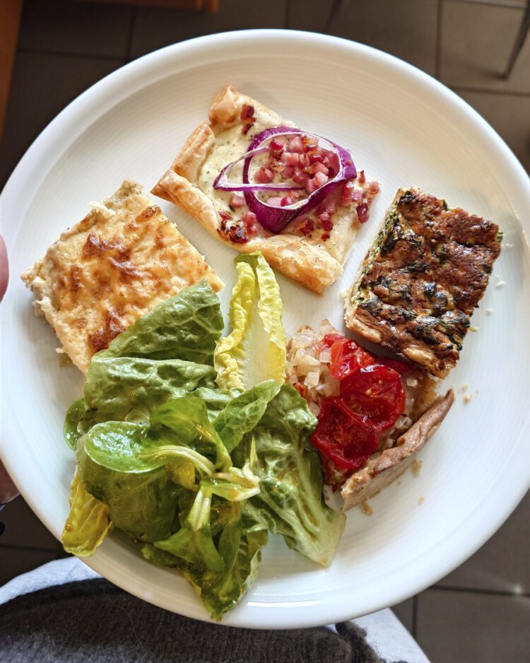 Milchreis. Fischstäbchen mit Salat und Kräuter-Sodabread mit Lachs und Zitronenbutter am Karfreitag (katholische Essenstraditionen sind hartnäckig!). Tomaten-Zwiebel-Tarte, Spinatquiche mit Pininekernen und Wirsing-Shepherds-Pie am Ostersonntag.