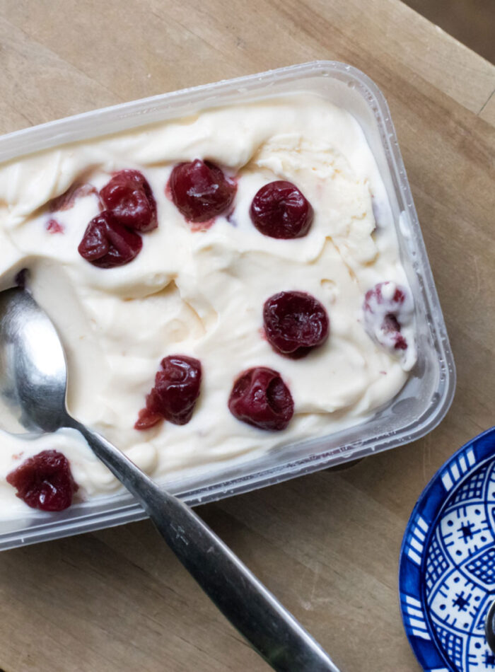 Buttermilcheis mit Kirschen