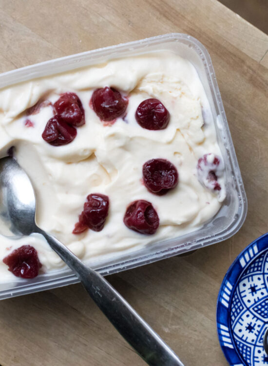 Buttermilcheis mit Kirschen