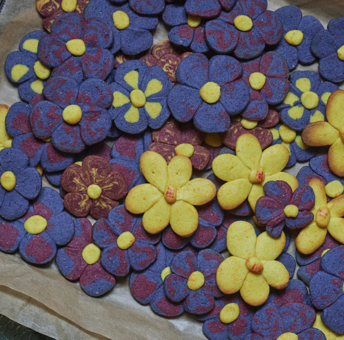 Comic-Frühling Lauren Dozier, die vor einiger Zeit mit ihren bunten Quilt-Keksen viral ging, hat vor einigen Wochen Stiefmütterchen-Kekse auf Instagram gepostet. Die fand ich so hübsch, dass ich sie unbedingt nachmachen wollte. Als Grundlage nahm ich meinen hundertfach bewährten Knetteig…